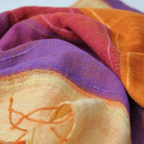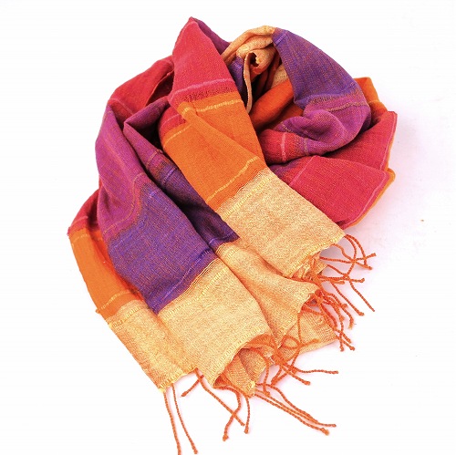 エチオピア、Sabaharの手織スカーフです。ふんわり柔らか、草木染の鮮やかな色が美しいスカーフです。シルクが織り込まれた布は、美しい光沢と肌触りで贅沢な気分を味わえます。