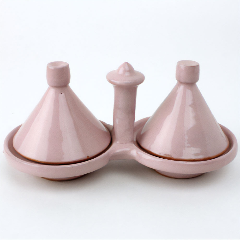 陶製タジン2連スパイス入れ 単色 薄ピンク