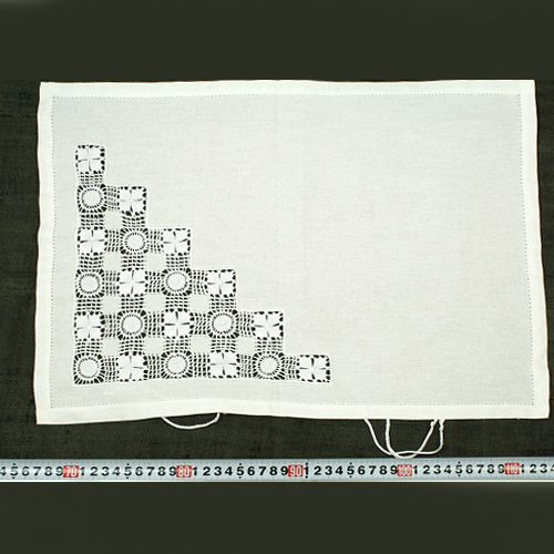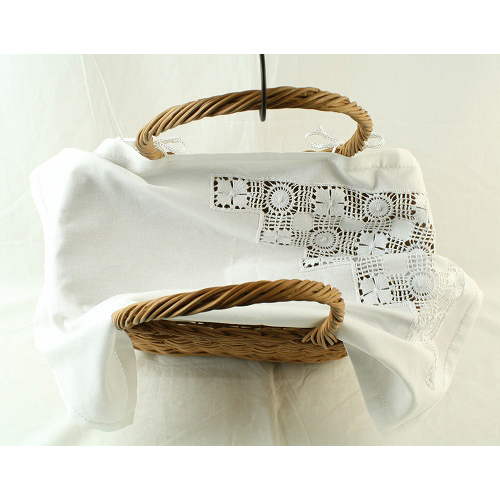 マダガスカルの職人が丁寧に刺繍した綿麻素材のカゴバッグ用のかぶせ布です。シンプルなホワイトの生地にドロンワークが描き出す模様が美しく生えるかぶせ布です。タッセルつきの紐で固定するタイプです。お気に入りのカゴバッグをよりエレガントで機能的にリニューアル、アレンジをお楽しみください。ドロンワーク (drawn work) は刺繍の一種。 布地にステッチをかけたり、縦糸や横糸を部分的に抜き取った残りの糸をかがったり、布地に細かく美しい模様を描く手のかかる技法です。