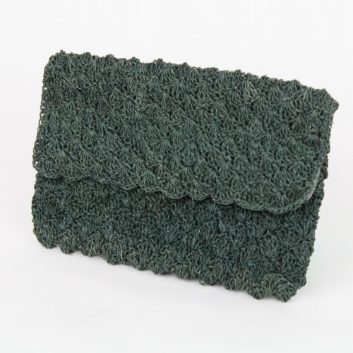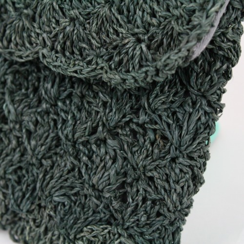 ラフィアより紐かぎ編み ポーチ 松葉編み グレー