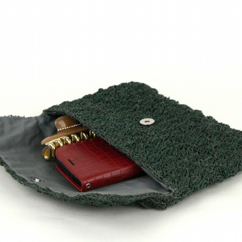 マダガスカル産ラフィアのおしゃなポーチバッグです。エレガントな松葉編みが、ラフィアの美しさをいっそう際立たたせています。うち布つき