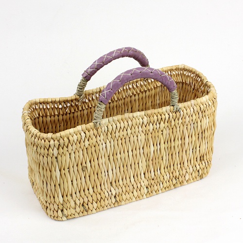 クロスステッチを施した革のハンドルがポイントの、横長タイプストローバッグです。ストローとは現地でジョンクと呼ばれている水草の一種。表面がツルツルして持ちやすく、シンプルなデザインで合わせやすいカゴバッグです。またCDや小物を入れてインテリアバスケットとしてもお使いいただけます。