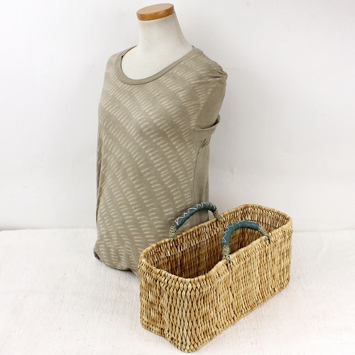 ストロー状の水草で編んだ、横長タイプのかごバッグです。モロッコでJONK(ジョンク)と呼ばれる表面がツルツルした丈夫な素材で、ナチュラルな風合とたたみのような編み目が人気です。ハンドルのクロスステッチがポイント。どんなお洋服にもコーディネイトしやすく、お出かけやお買い物に、ワインやお弁当をいれてランチバッグとしても活躍します。自立するので、雑誌やスリッパなどインテリアバスケットとしてもご使用いただけます。各サイズございます。