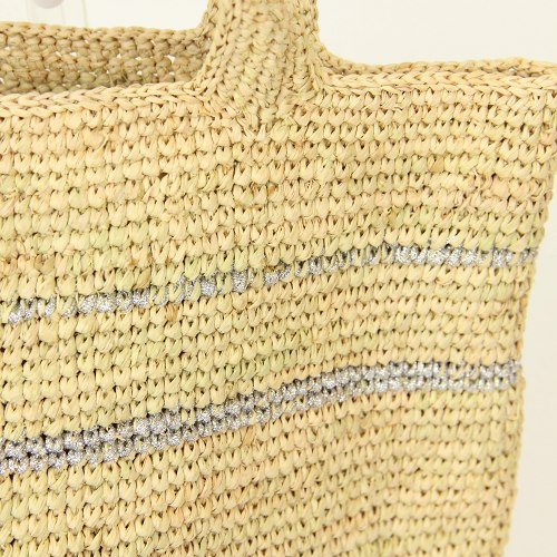 ラフィアかぎ編みバッグ 銀リボン編み込みナチュラル