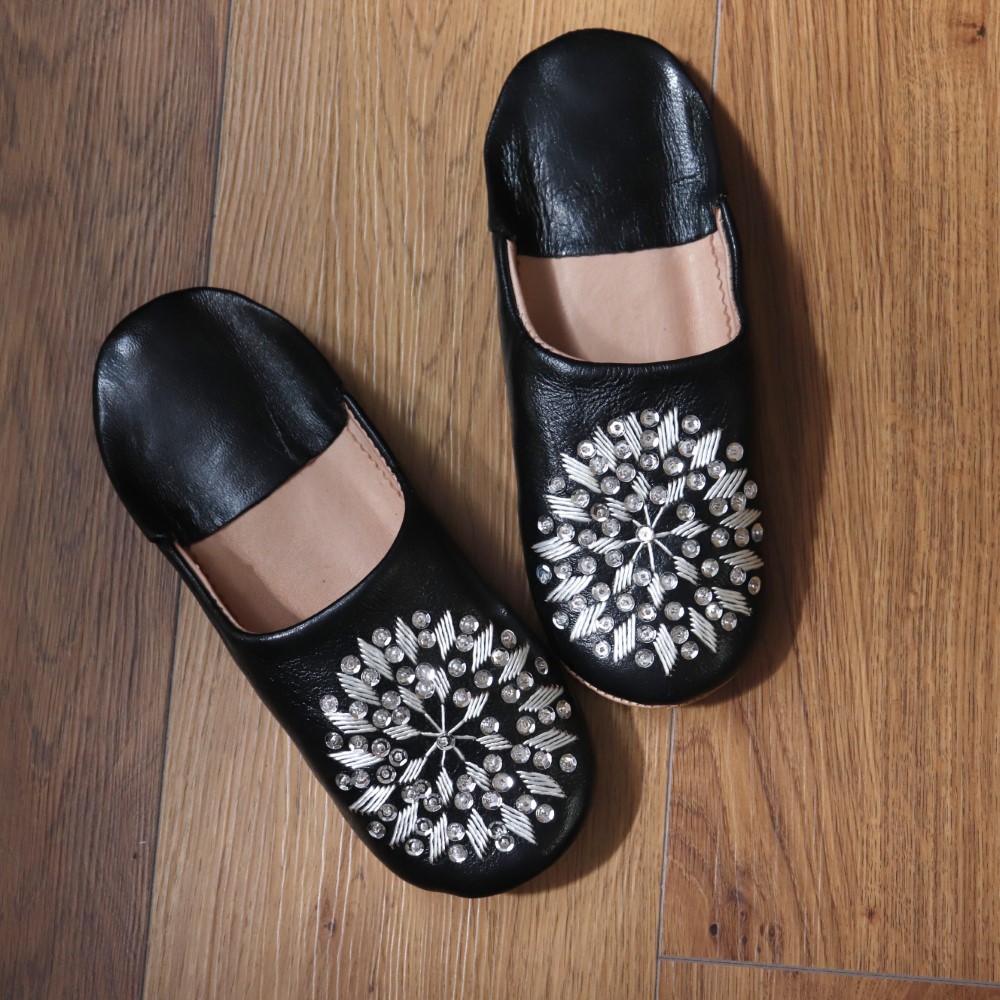 モロッコ伝統刺繍とスパンコールをあしらった華やかなバブーシュです。サイズは39のみ。