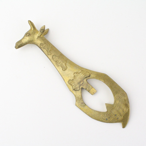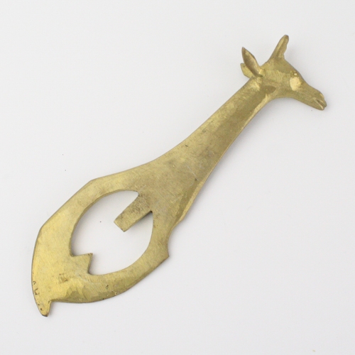 金色に輝くキリンの真鍮製栓抜きです。ずしりとした質感、すべて手作りです。使わないときは飾りにもなり、プレゼントにも喜ばれます。