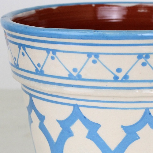 モロッコ陶製植木鉢 大 アラベスク柄 白ベース水色