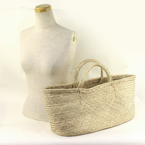 ニジェールのアガデスで作られるマルシェバッグです。人気の楕円底、横長タイプです。お出かけやお買い物に大活躍。ツルツルとした椰子の葉で編まれ、軽くて丈夫、耐久製があり素朴な風合いが魅力的です。