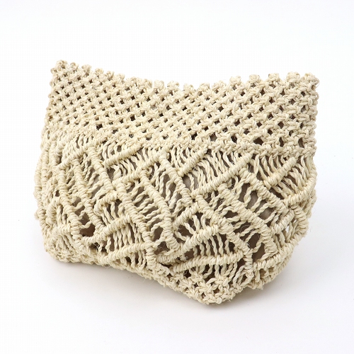 サイザル麻をマクラメ編みしたポーチバッグです。内布マグネット付。マダガスカルの熟練の職人さんが丁寧に編み上げました。スマートフォンや化粧品など身の回りの小物などすっきり収納できます。マダガスカルの熟練の職人さんとともに、細部までこだわりひとつひとつ作り上げたオリジナルバッグです。丁寧に編み上げているので、仕上がりが美しく、永くお使いいただけます。
