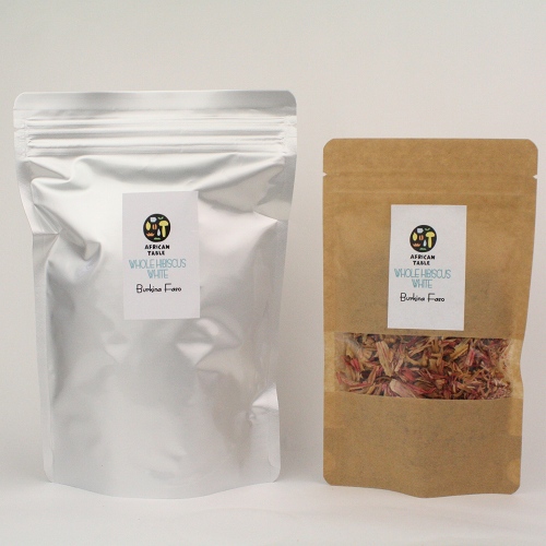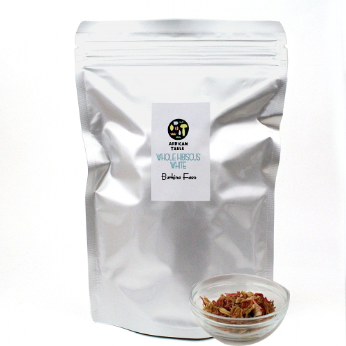 こちらのホワイトハイビスカスは、レッドと比べると渋みもなく、すっきり爽やか上品な後味が特徴です。色を出したくない時にもおすすめです。地元では料理に使われることが多いそうです。ブルキナファソのOrodaraという町で、太陽の力をたっぷり吸収し、農薬を使わずに育てられたものを厳選しました。カップ1杯(200ml)に2g入れ、3分?5分蒸らしたホット/アイスティーにレモンやミントを入れたり、、ヨーグルトにホールハイビスカスを入れてまるごと食したり、また、ジャムや蜂蜜漬けにしてもお薦め!
