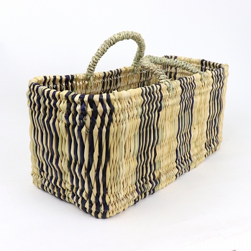 黒xナチュラルのストロー状の水草で編んだ、柄入り横長タイプのかごバッグです。水草は、モロッコでJONK(ジョンク)と呼ばれる表面がツルツルした丈夫な素材です。ナチュラルな風合とたたみのような編み目で大人気。どんなお洋服にもコーディネイトしやすく、お出かけやお買い物に、ワインやお弁当をいれてランチバッグとしても活躍します。自立するので、インテリアカゴとしても活躍します。キッチンアイテムや、雑誌やスリッパなど、すっきり収納できる優れものです。各サイズございます。