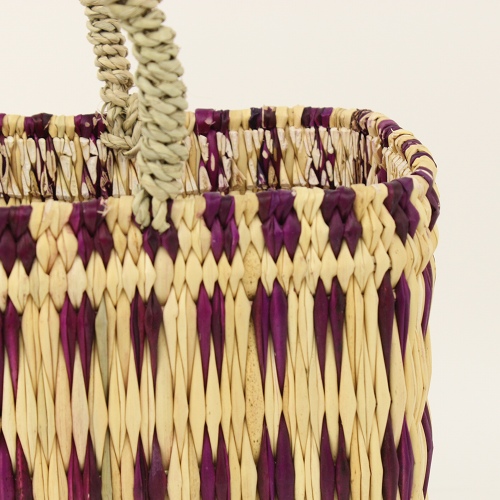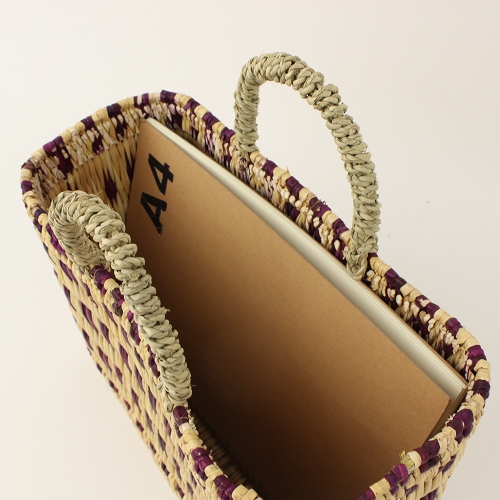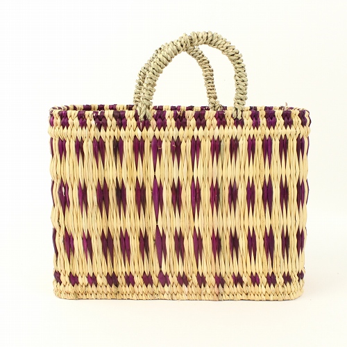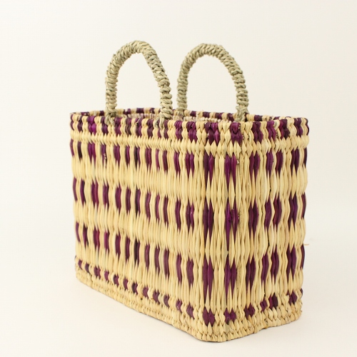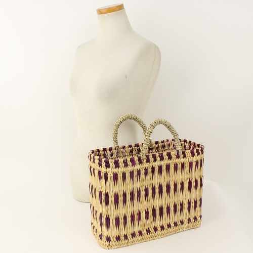 フシアxナチュラルのストロー状の水草で編んだ、柄入りタイプのかごバッグです。水草は、モロッコでJONK(ジョンク)と呼ばれる表面がツルツルした丈夫な素材です。ナチュラルな風合とたたみのような編み目で大人気。どんなお洋服にもコーディネイトしやすく、お出かけやお買い物に、ワインやお弁当をいれてランチバッグとしても活躍します。自立するので、インテリアカゴとしても活躍します。キッチンアイテムや、雑誌やスリッパなど、すっきり収納できる優れものです。各サイズございます。