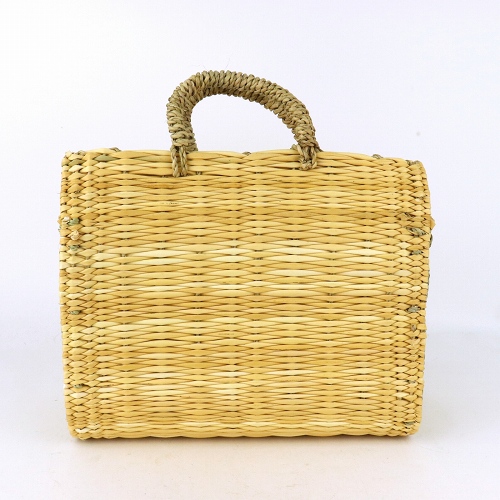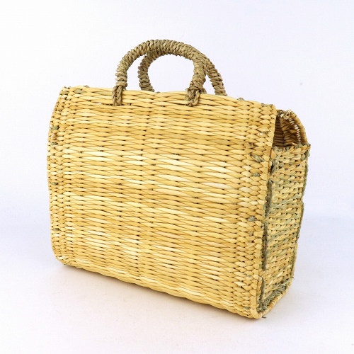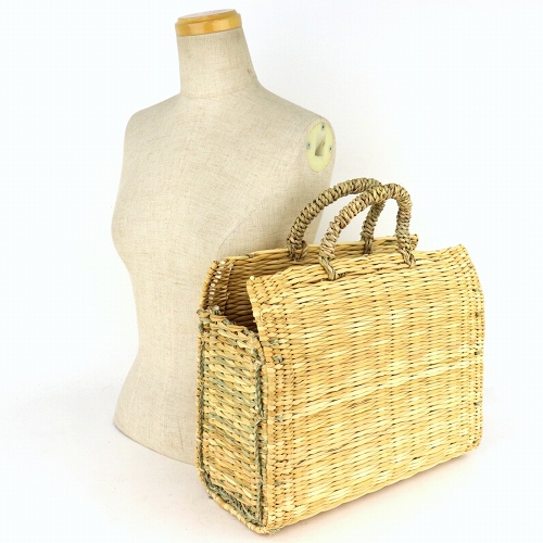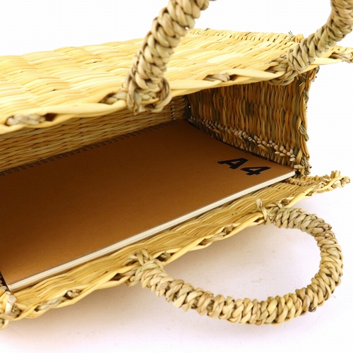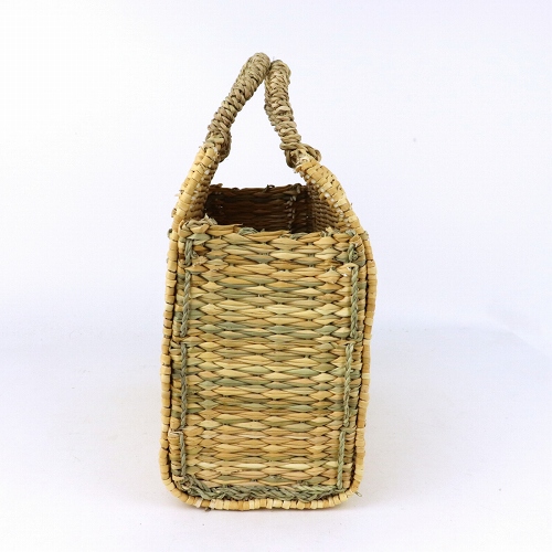 ストロー状の水草で編んだ、かぶせタイプの四角かごバッグです。モロッコでJONK(ジョンク)と呼ばれる表面がツルツルした丈夫な素材で、ナチュラルな風合とたたみのような編み目が人気です。どんなお洋服にもコーディネイトしやすく、お出かけやお買い物に、ワインやお弁当をいれて行楽にも活躍します。インテリアバスケットとしてもご使用いただけます。各サイズございます。*ストロー四角かご かぶせシリーズKR14042A・B・Cは2019年9月1日価格改定します。