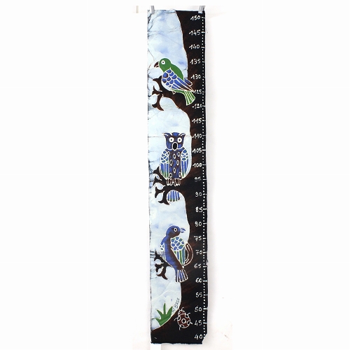 愛嬌たっぷりな鳥たちが描かれた身長計付きバティックタペストリーです。お子様の成長を願うプレゼントなどにも喜ばれています。
