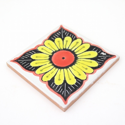 チュニジアの職人さんが一枚一枚手描きした10x10cmタイルです。伝統柄をモチーフに色鮮やかに焼き上げた人気の植物柄です。土台のテラコッタ(ビスケット)は、硬い素材で作られた薄めタイプ。地中海沿岸という土地柄から、ヨーロッパとイスラム文化が融合した、独自の美しさを追求してきたチュニジアタイルです。お部屋やキッチンの模様替えに、1枚でも組み合わせても美しいタイルです。ひと味違う洗煉されたお部屋を演出します。