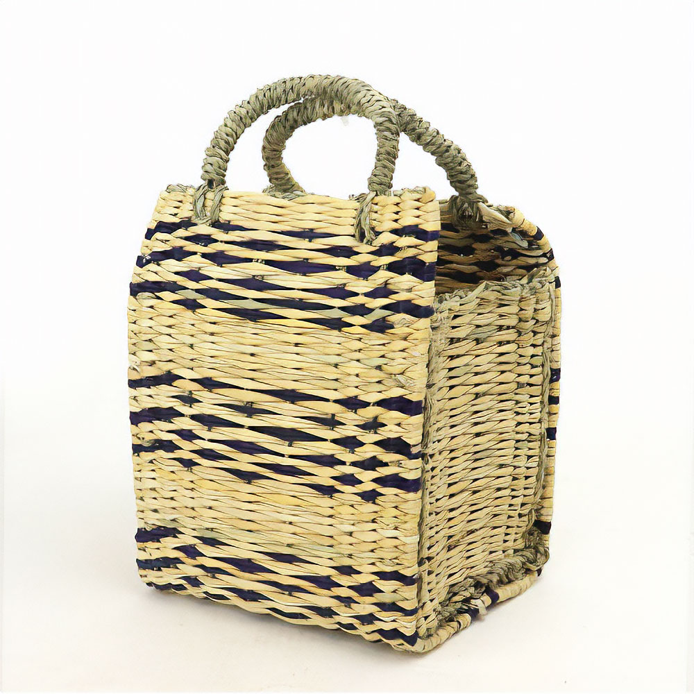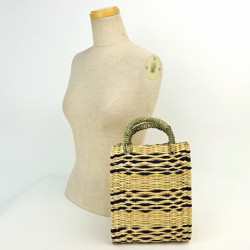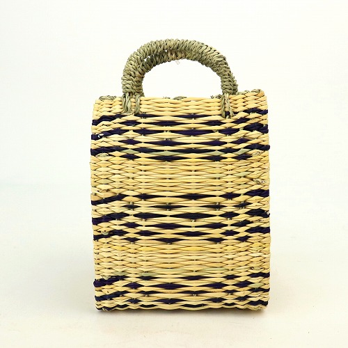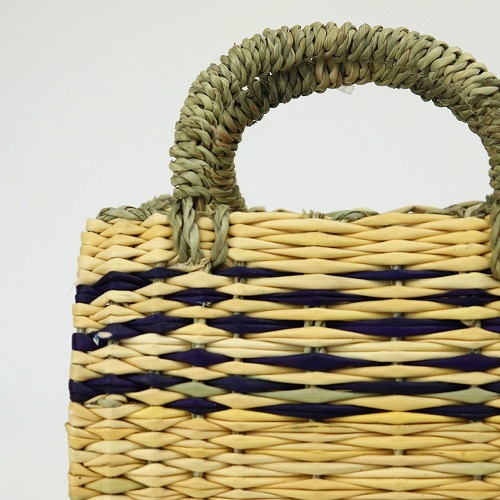 ストロー状の水草で編んだ、かぶせ四角かごバッグ柄入りタイプです。ほどよいサイズ感で、どんなお洋服にもコーディネイトしやすいカゴバッグです。マチがあるのでお弁当をいれてランチバッグとしても活躍します。自立するので、インテリアバスケットとしてもご使用いただけます。ストロー素材は、モロッコでJONK(ジョンク)と呼ばれる表面がツルツルした丈夫な水草で、ナチュラルな風合とたたみのような編み目が人気です。