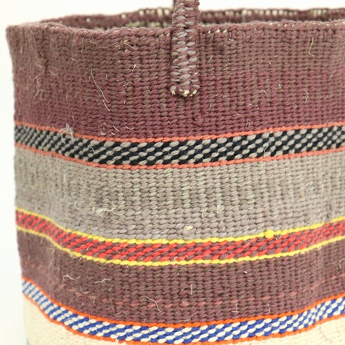 サイザルとはリュウゼツランの一種で、その繊維は歴史的に広く使われていた繊維である麻にちなんでサイザル麻と呼ばれています。ケニアのキクユ人やカンバ人の伝統技術により サイザルで編んだバスケット(=キオンド)は穀物の運搬や保存にケニアでは使われていました。かごを編む技術は母から娘へと受け継がれ、ケニアの小さな農村の女性を中心にひとつひとつ手作りで編み上げています。現在ではサイザルバッグを編むことがケニアの村の重要な現金収入源となり、各家庭の子どもたちの学費となり生活費の足しとなっています。