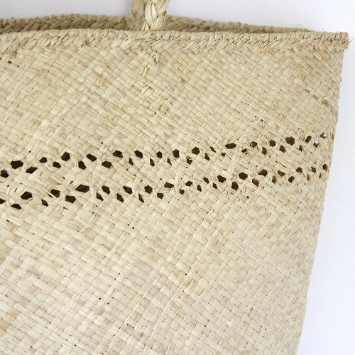 透かし模様が涼しげなラフィアトレッセバッグです。肩掛けOKで、丸底なので物も入り便利。お出かけや行楽に大活躍です。マダガスカルラフィアは、美しい艶と優しい肌触りが特徴、とても軽く日本でも高級素材として大変人気があります。マダガスカルの熟練の職人さんとともに、細部までこだわりひとつひとつ作り上げたオリジナルバッグです。丁寧に編み上げているので、仕上がりが美しく、永くお使いいただけます。