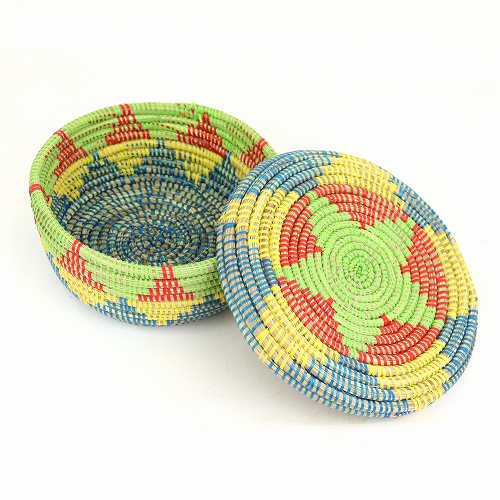 セネガルカゴ 筒型 蓋付き 三角段々柄 小 マルチ