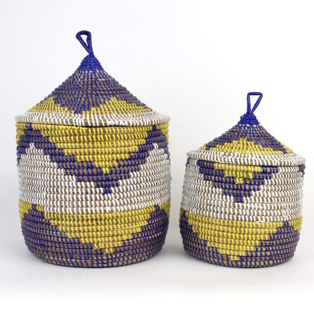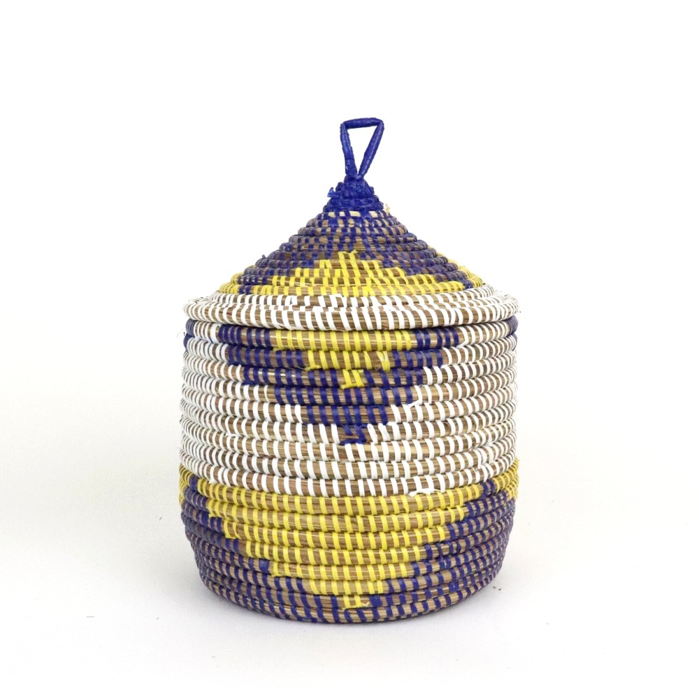 セネガルカゴ とんがり蓋付き ジグザグ三角柄 小 紺