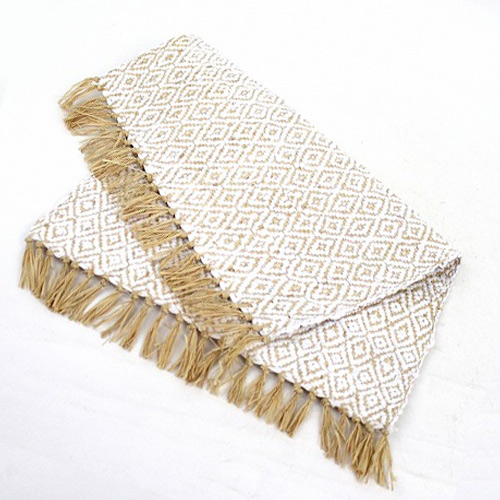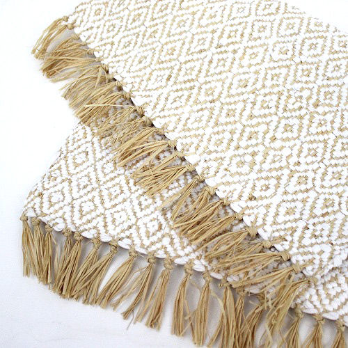 しなやかで軽いラフィアと,綿(Tシャツの残り生地)で編み上げた爽やかな風合いのマットです。どんなお部屋にもマッチするシンプル&ナチュラルな素材です。