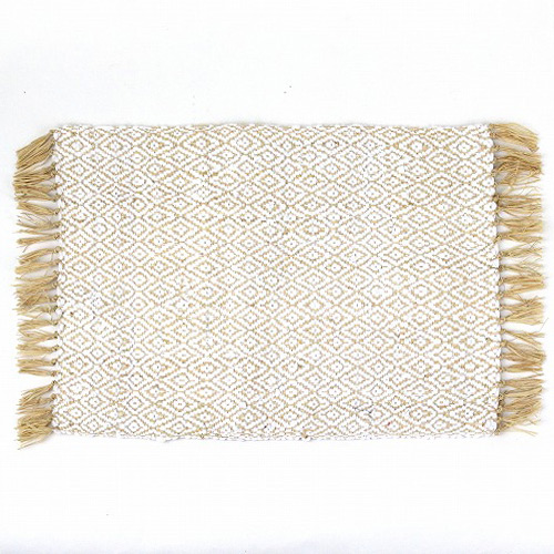 ラフィアコットン布 ひし形小 白