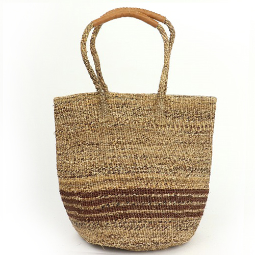 ナチュラルな風合いが人気、ハンドル長め10x12インチのバナナバッグです。ボーダー柄と革巻きハンドルがポイント。ファイルも雑誌もスッポリ入るので、お出かけや通学にも使えます。ケニアのバナナかごバッグとは、バナナの樹皮を編み上げたカゴバッグです。質感は、繊維が多少毛羽立っていますが、柔らかい素材です。ほんのりバナナ樹の香りがするのも特徴です!
