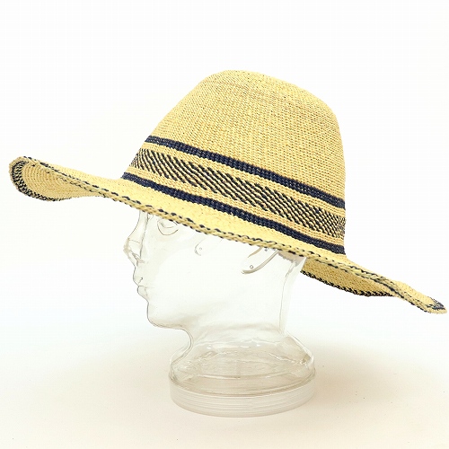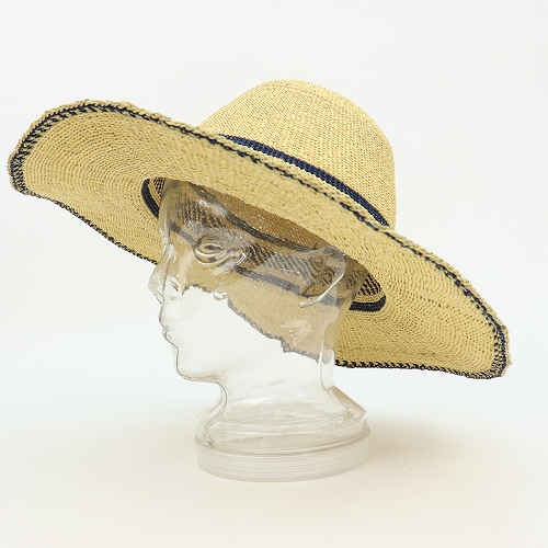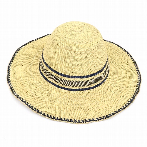 ボルガバスケットと同素材でしっかり編み上げたつば広帽子、大き目サイズです。柄が編みこんであります。ガーデニングや行楽に、フォークロア調のアイテムに合わせて、お洒落な服飾小物としても重宝します。