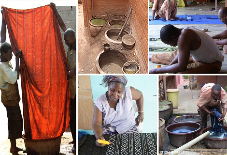 西アフリカのマリ伝統的な泥染布の製作工程は、