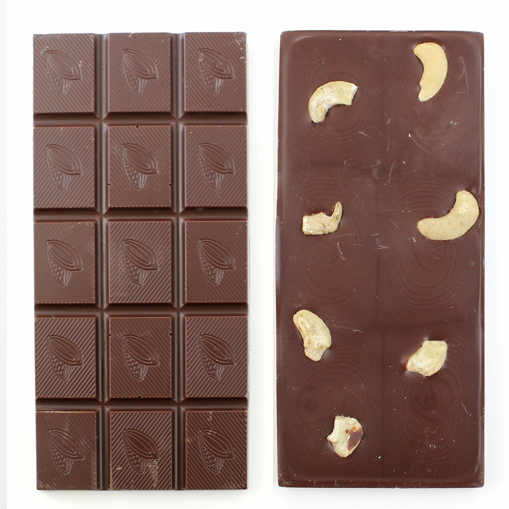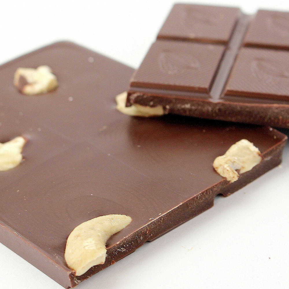 素材: カカオ(カカオマス、カカオバター)、砂糖、カシューナッツ、塩/乳化剤、(一部に乳成分、カシューナッツを含む)