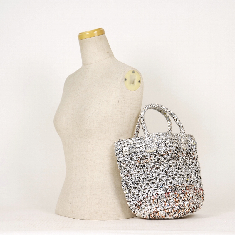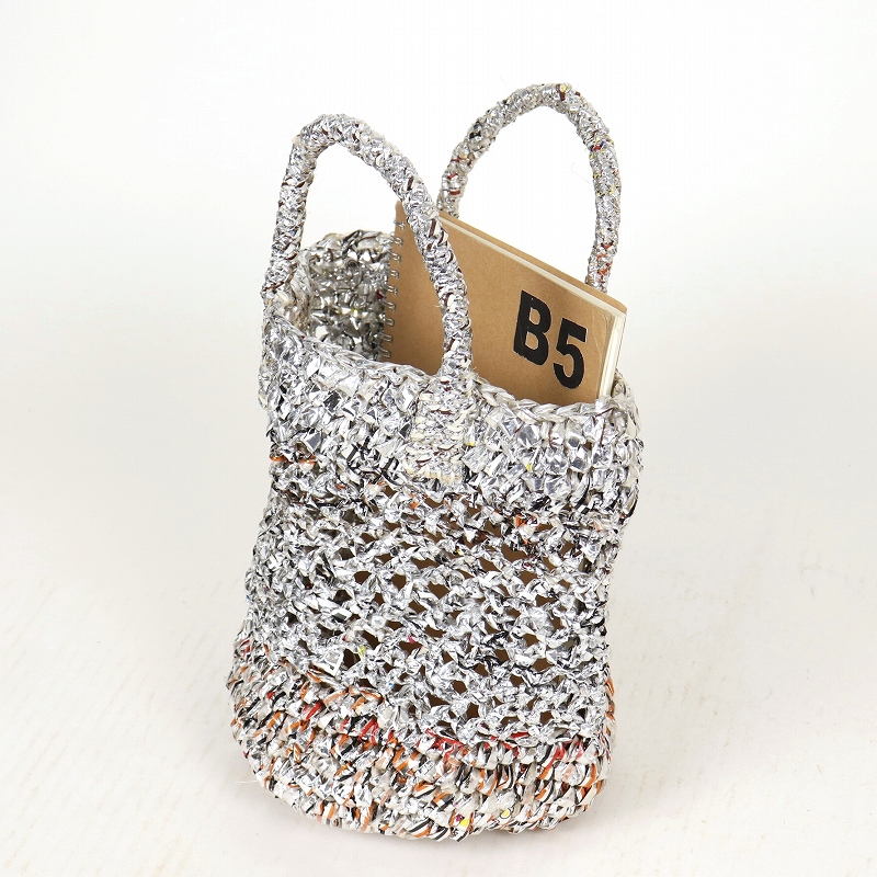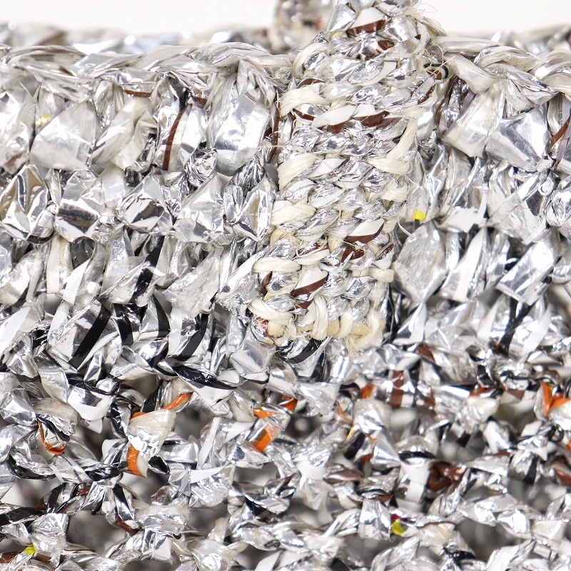 アップサイクルプラかぎ編みバッグ共手8x9 透かし シルバー