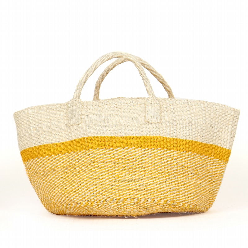 サイザルとはリュウゼツランの一種で、その繊維は歴史的に広く使われていた繊維である麻にちなんでサイザル麻と呼ばれています。ケニアのキクユ人やカンバ人の伝統技術により サイザルで編んだバスケット(=キオンド)は穀物の運搬や保存にケニアでは使われていました。かごを編む技術は母から娘へと受け継がれ、ケニアの小さな農村の女性を中心にひとつひとつ手作りで編み上げています。現在ではサイザルバッグを編むことがケニアの村の重要な現金収入源となり、各家庭の子どもたちの学費となり生活費の足しとなっています。