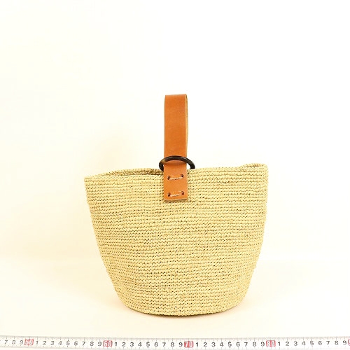 ラフィアかぎ編みバッグ 細編丸底牛角リング NAT