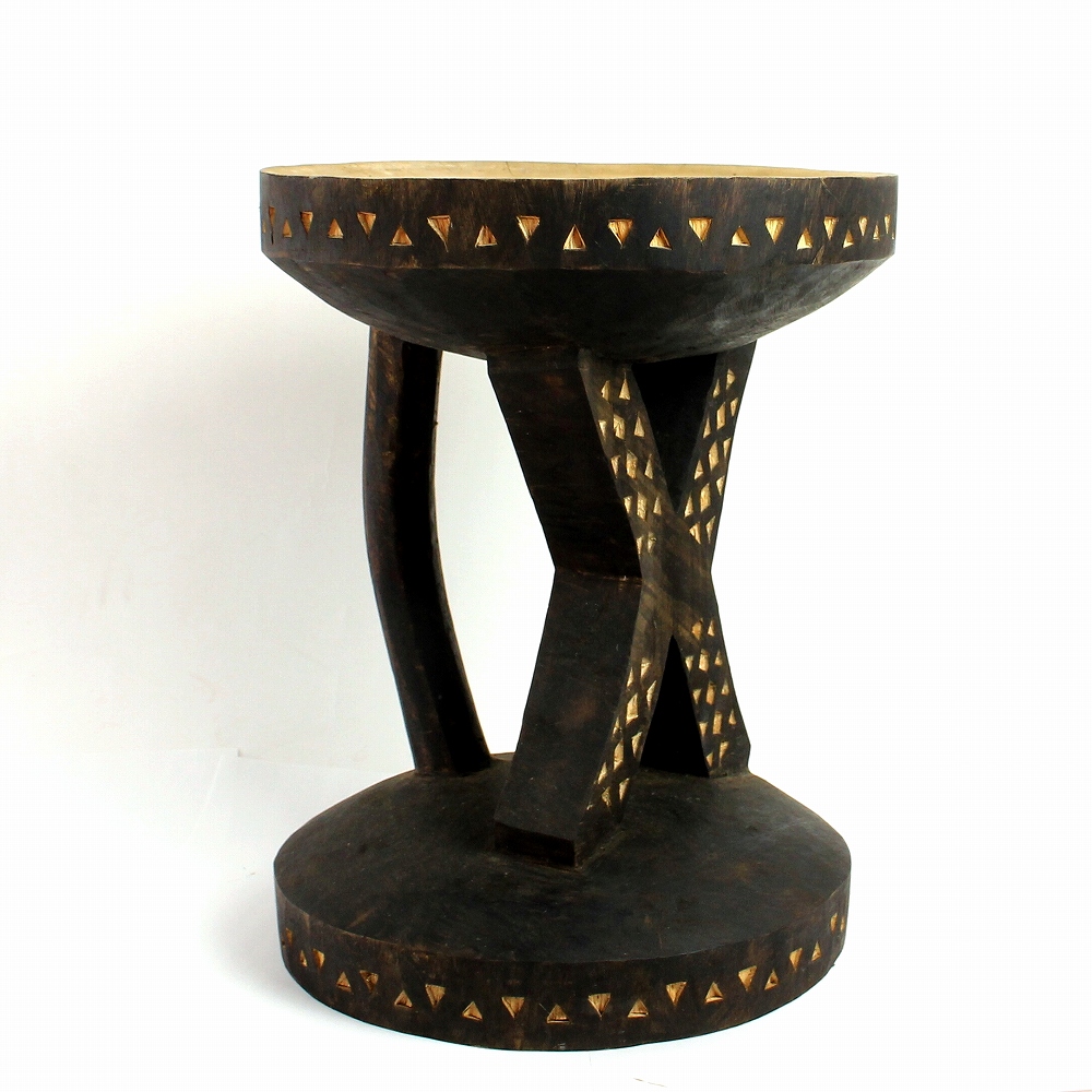 一本の木をくり抜いたプリミティブな力強いフォルムは圧巻です。スツールの色は同じくジンバブエの工芸品であるトンガバスケットと同様の手法で染められています。木の自然の色味と、泥染の美しい黒色のコントラストが美しい、和の空間にもよく合うデザインです。アフリカンモダンなプリミティブ家具でお部屋のコーディネートをお楽しみください。