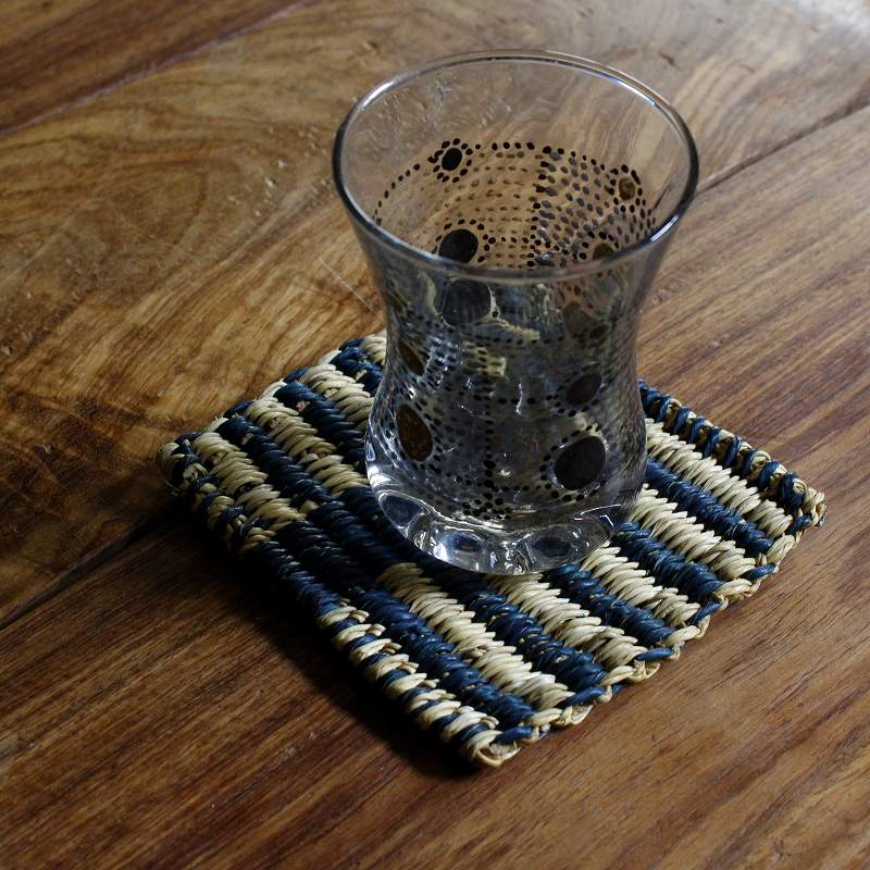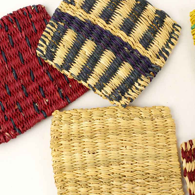 ボルガバスケットと同素材で正方形に編み上げたコースターです。ナチュラルとカラーの2種類で柄はアソートです。天然草木の素朴な風合いでコーディネートしやすい一品です。