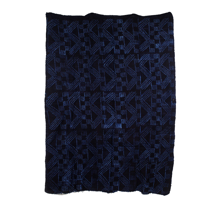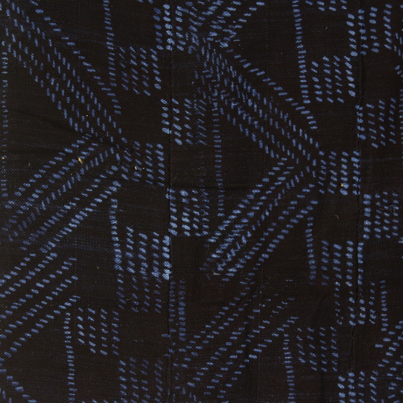 西アフリカでは古くから藍染が盛んで、代々親から子へ藍染文化が伝承されてきました。これらはヨルバインディゴと呼ばれるマメ科の藍植物で染められ、抗菌効果、防虫、防カビ、防臭効果など優れた作用があるといわれています。 独特な絞り染めの図案は、ラフィアの糸などを使い布を絞り、藍染液につけ模様を出します。多くの時間を費やし染められたアフリカの藍染です。