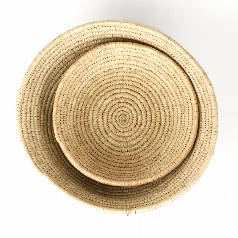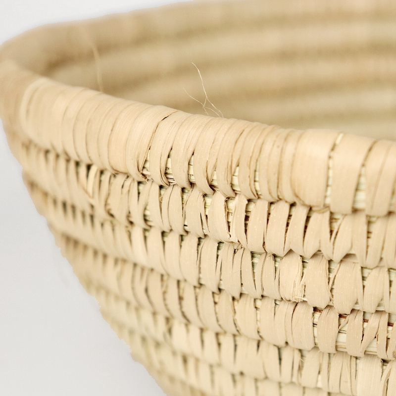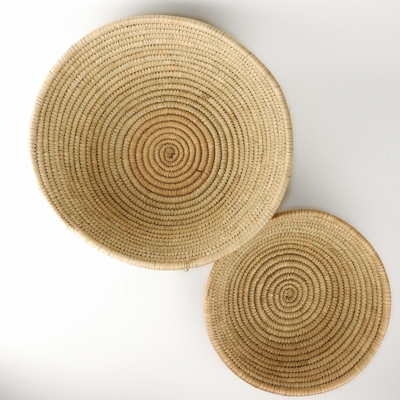 マリ共和国中央部のセグー州のあたりで伝統的に作られる素朴なバスケットです。水草をコイル状に巻きつけ編み上げたシンプルで存在感あふれるフォルム。現地では穀物を入れたり日常で使われます。素朴で無骨な荒らさがあり、編みムラや毛羽たち、 異物混入などがありますが雰囲気のあるものとなっております。