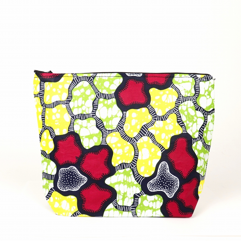 こちらの商品は、西アフリカのパーニュ布を使ったポーチです。内布ファスナー付きでしっかりと作られています。化粧品や小物入れに。少量のみの生産で多少の柄ずれ、ほつれなどがございますが、大量生産品には無いあたたかみがあります。日本の消費者にも好まれる、使いやすくおしゃれなデザインを取り入れています。