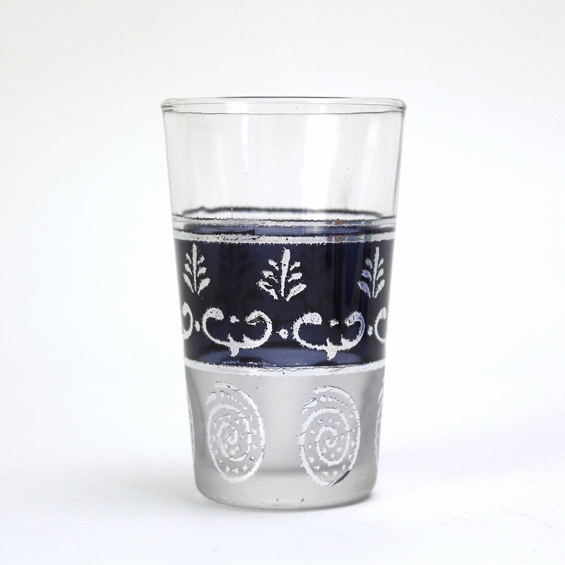 モロッコプリントグラス 1個売り 銀葉っぱ 濃紺