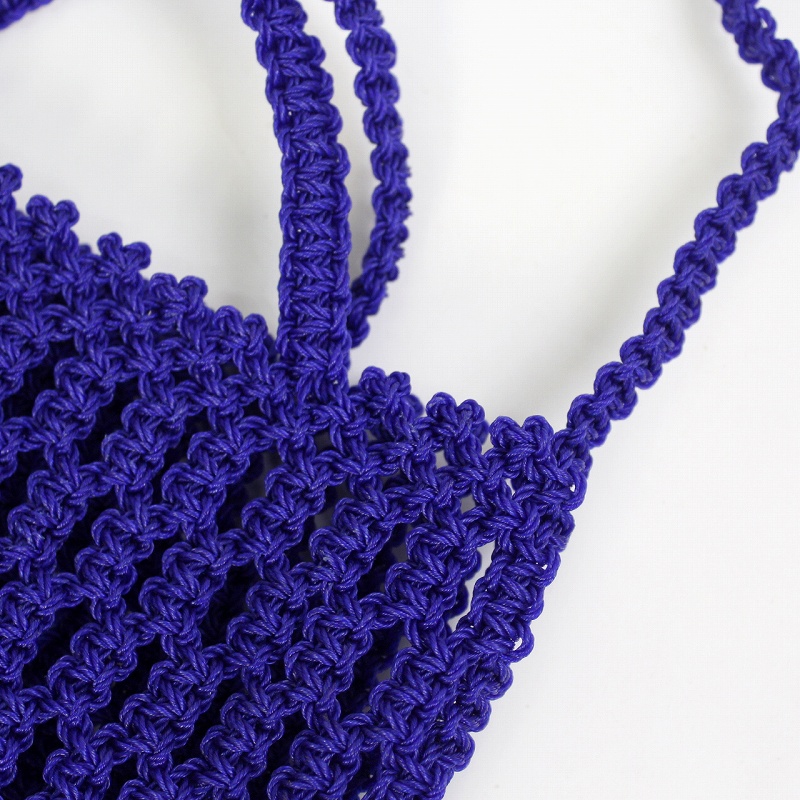 ナイロン紐でお洒落に編まれた丈夫なマクラメ編みのバッグ。ストラップ付きなのでショルダーにもなる2wayバッグです。ナイロンならではの鮮やかな発色は、普段のコーデのスパイスに。小さめサイズなのでワンンマイルバッグやサブバッグとしてご利用いただけます。