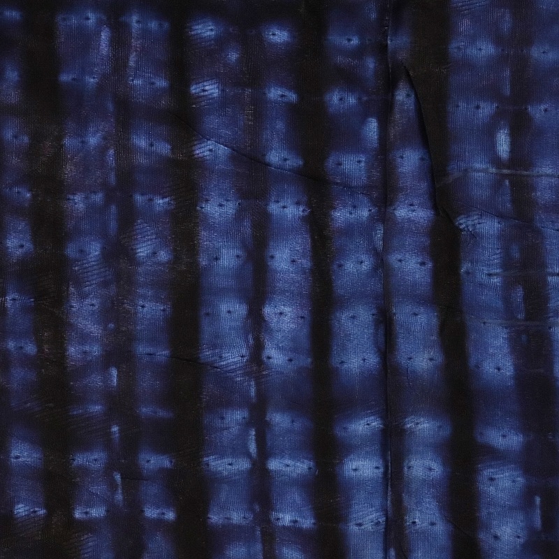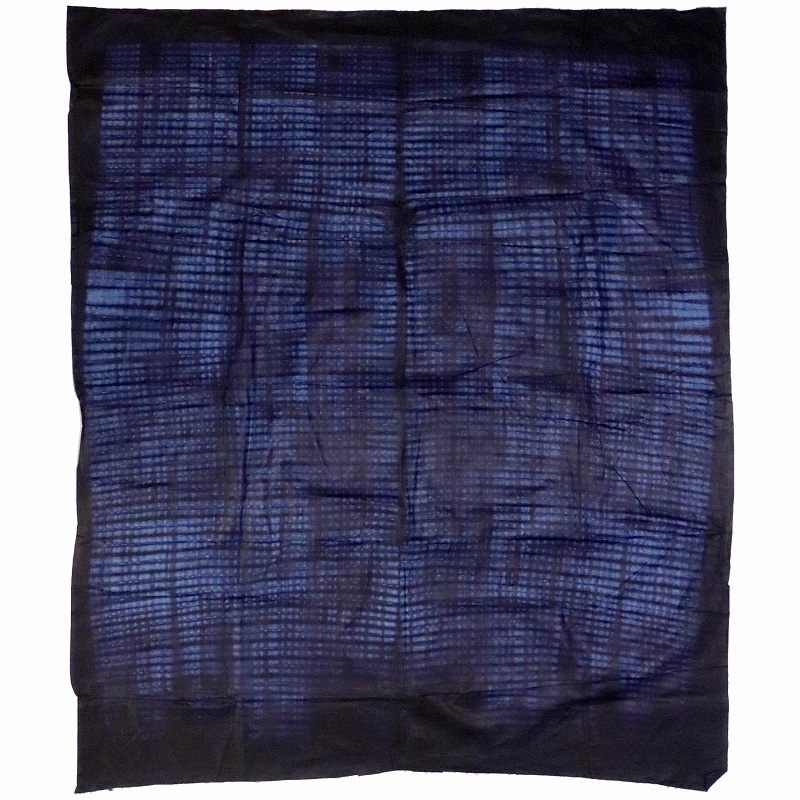 西アフリカでは古くから藍染が盛んで、代々親から子へ藍染文化が伝承されてきました。これらはヨルバインディゴと呼ばれるマメ科の藍植物で染められ、抗菌効果、防虫、防カビ、防臭効果など優れた作用があるといわれています。 独特な絞り染めの図案は、ラフィアの糸などを使い布を絞り、藍染液につけ模様を出します。多くの時間を費やし染められたアフリカの藍染です。