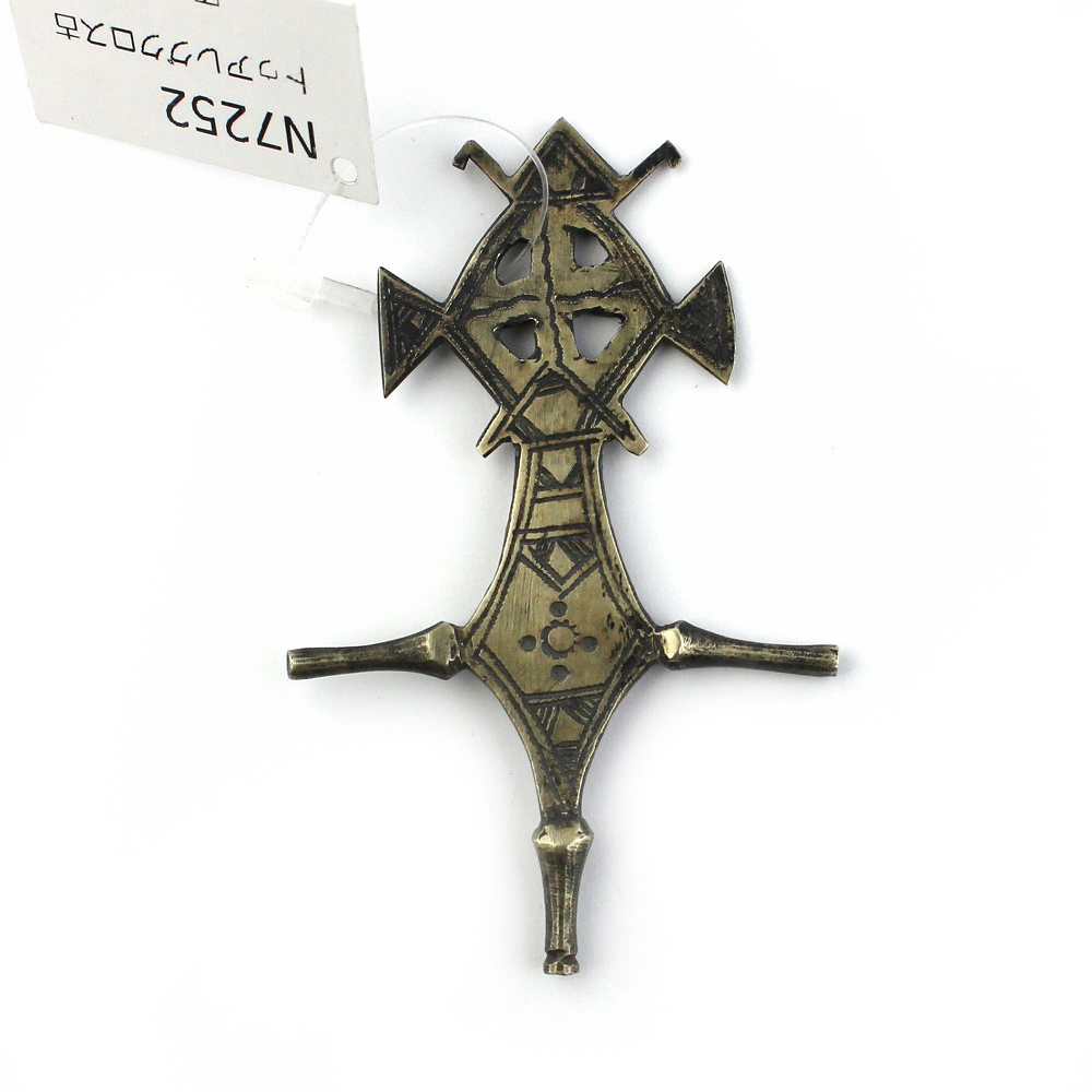 トゥアレグの紋章からデザインされたペンダントヘッドです。高い工芸技術とデザイン性をもつトゥアレグの人々は、アフリカのサハラ砂漠を支配したベルベル系の遊牧民です。特に砂漠でのコンパスをモチーフとしたトゥアレグ・クロスは、かのエルメスがデザインに取り入れたことで世界的に有名になりました。紋章をかたどったペンダントは、親から子へと代々受け継がれ、出身地や氏族などを示すパスポートとして今なお使われているそうです。これらの手作り品は、「お守り」としての大切な役割もあります。 雄大なサハラ砂漠を活動の場とする遊牧民トゥアレグの、ロマン溢れる工芸品を是非この機会にご覧ください。