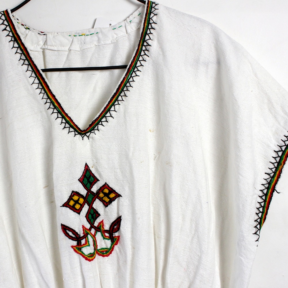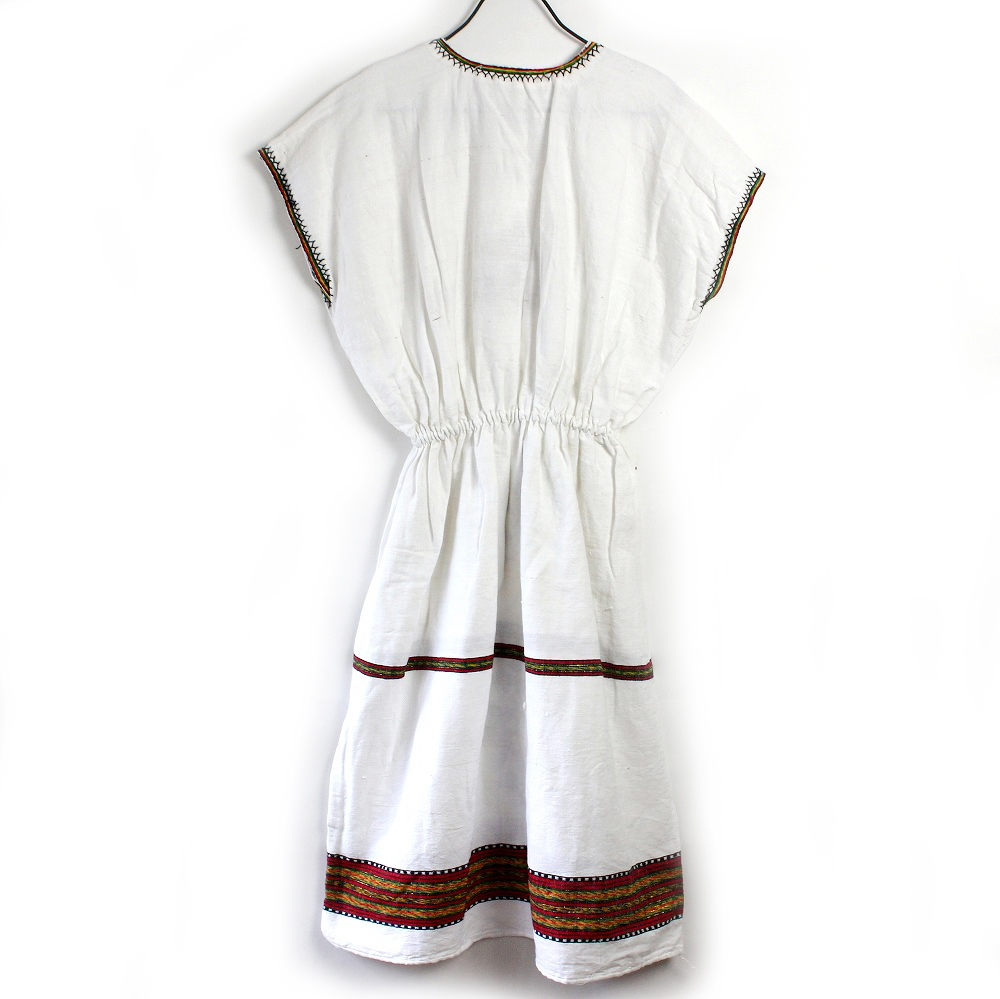 ガーゼタイプのコットン生地にエチオピアの伝統的な刺繍を手刺繍したショートワンピースです。