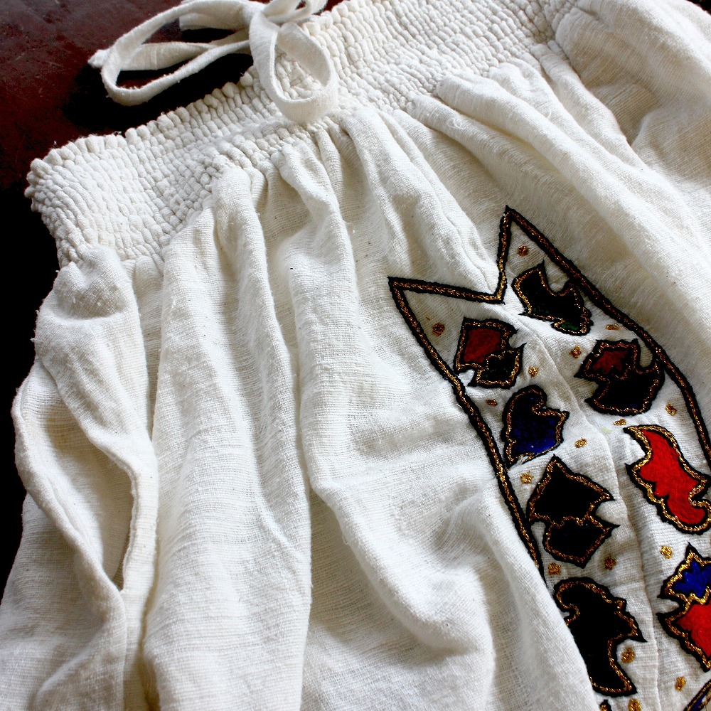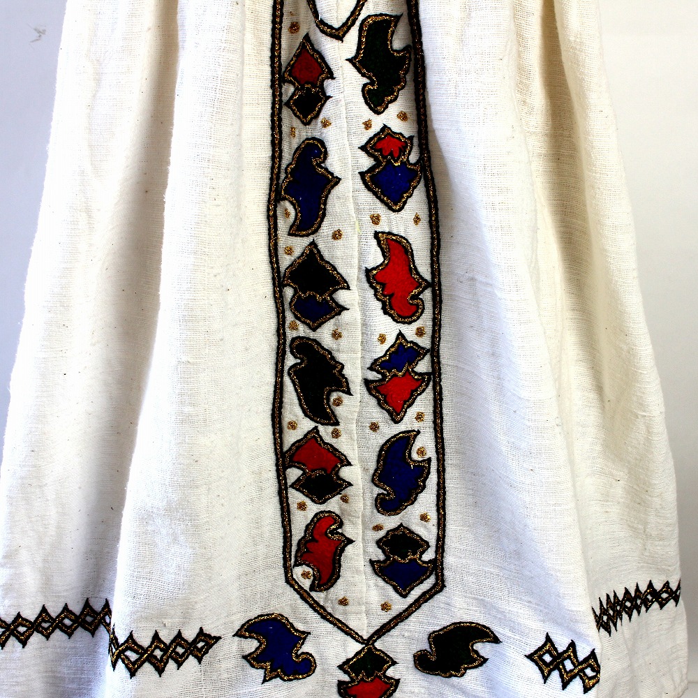 ガーゼタイプのコットン生地にエチオピアの伝統的な刺繍を手刺繍した2WAYスカートです。