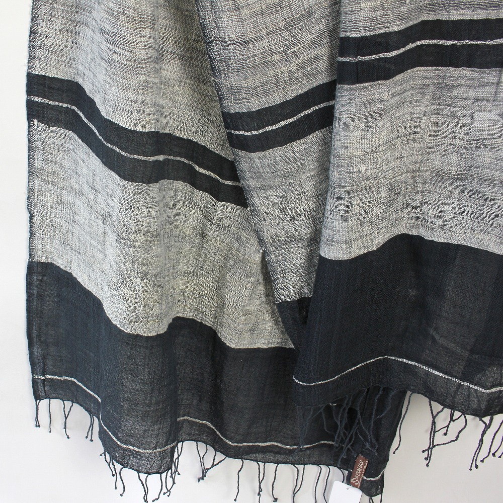 【SALE】 サバハールSABAHARショール 大 03黒ボーダ 一点物