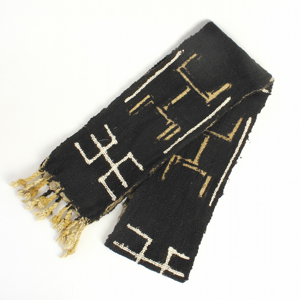 ボゴランベルトとは、伝統的な方法で織られた帯布に泥染草木染を施した西アフリカのベルトです。こちらはフリンジタイプです。ベルトやスカーフ以外にも、テーブルランナー、タペストリーなど、インテリアクロスとしてもご利用いただけます。色柄指定商品ですが、手描きのため画像と多少異なる場合がございます。天然染料のため色落ちがあります。予めご了承ください。洗濯の際にはドライクリーニングか水洗いをおすすめします。