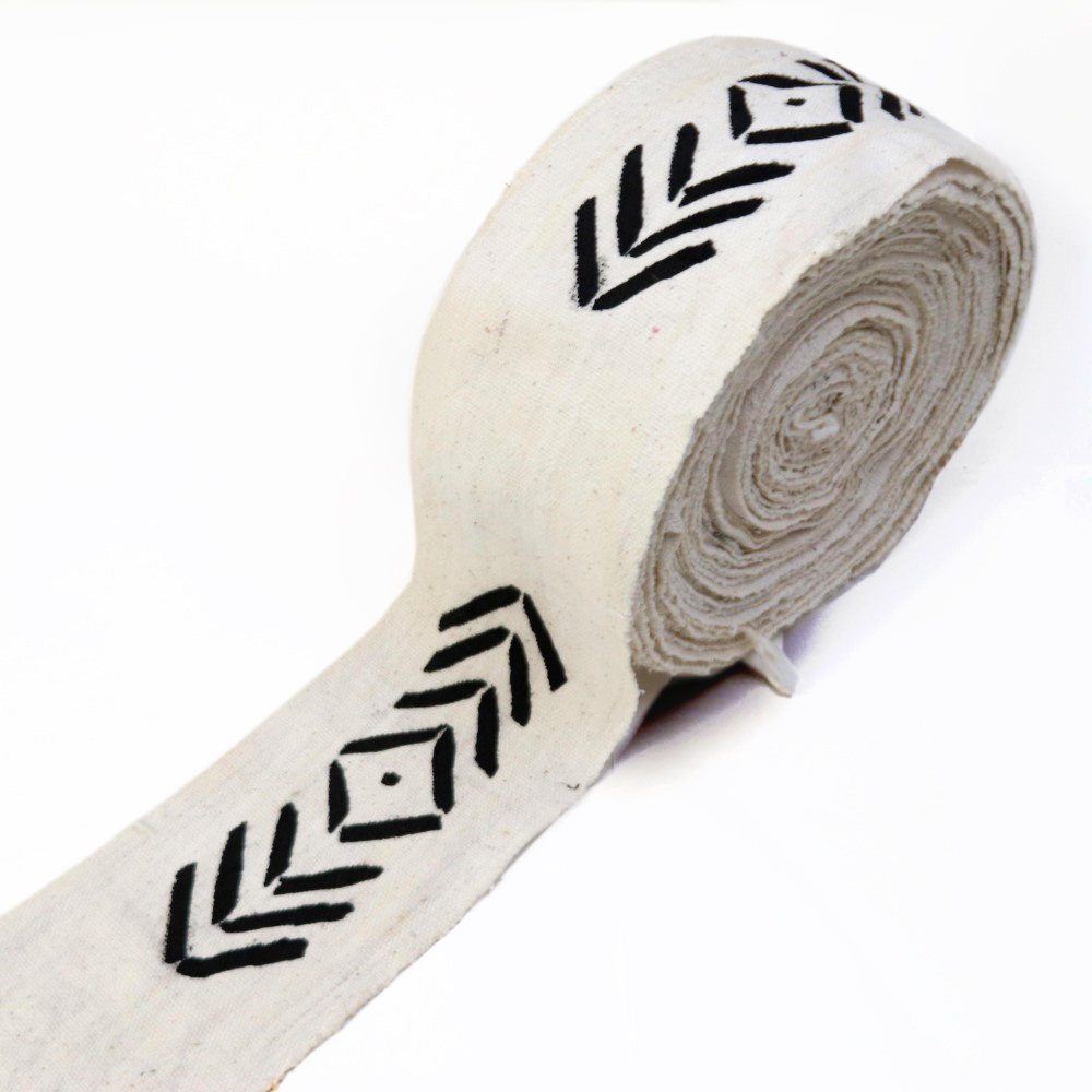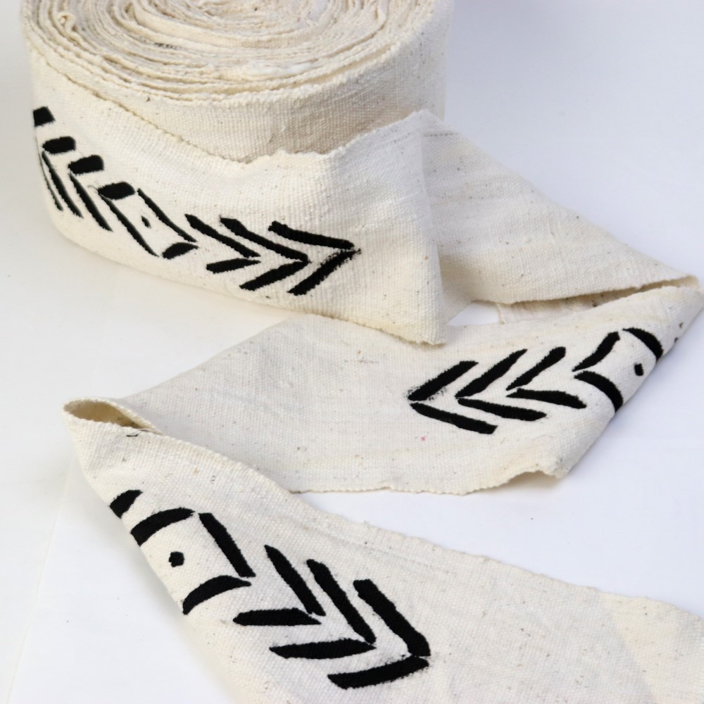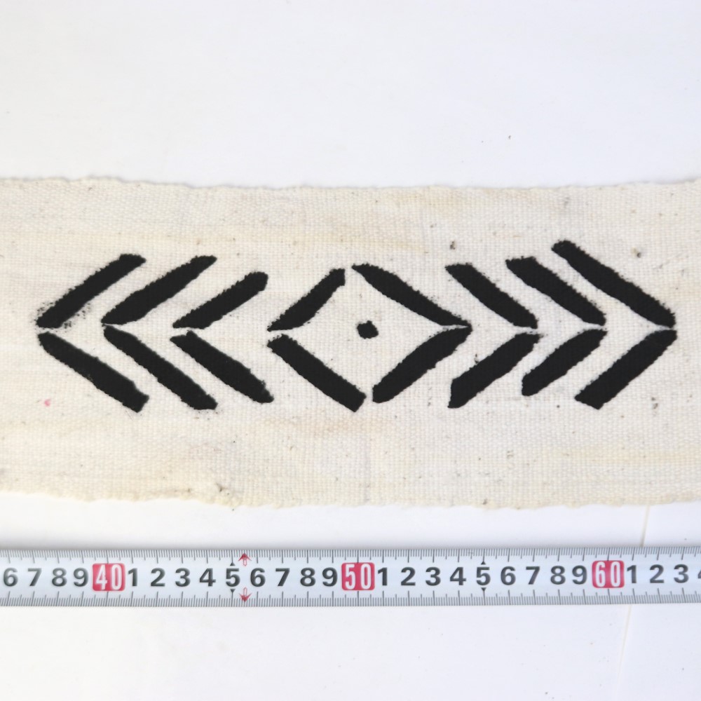 手織りの帯布に、伝統的な行程で丁寧に染められたマリの泥染布です。お部屋のインテリアやジャンベストラップとしても使えます。(約4m必要です。)天然染料のため色落ちがあります。洗濯の際にはドライクリーニングか水洗いをおすすめします。