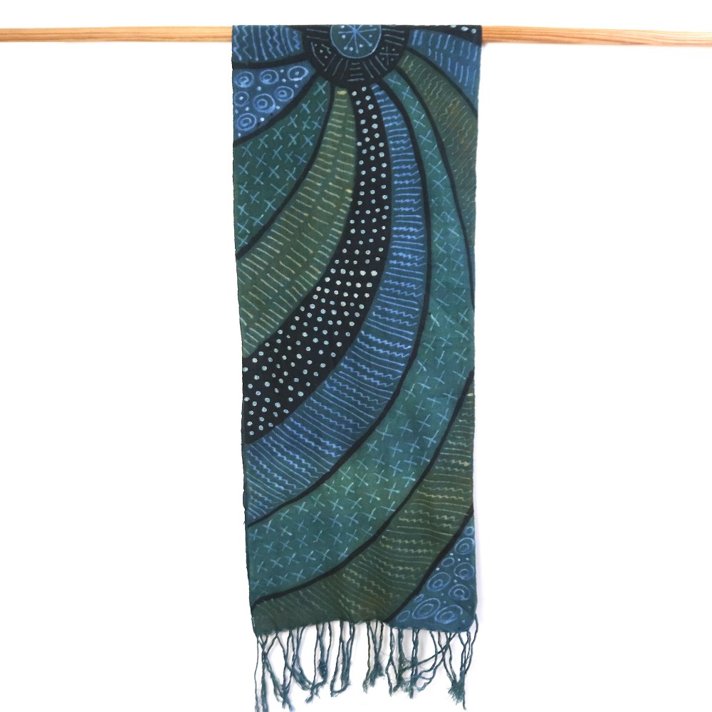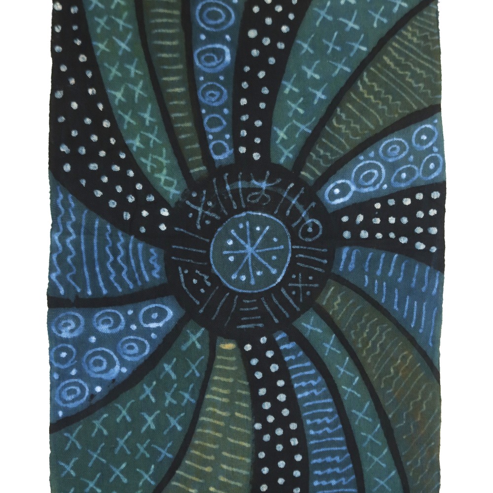 風合いの良い手織りの薄い綿布に泥染め、草木染めで模様を染めました。伝統的な行程で染められたマリの薄布ショールです。ベースカラーは、黒系は泥、茶系は草木、カーキベージュは草木+藍など、様々な天然染料を混ぜ合わせ、繊細な色を出しています。染め上がった布に、伝統柄や独創的なデザインを、ひとつひとつ手描きした、世界にひとつのショールです。ショールやスカーフ以外にも、テーブルランナーやタペストリー等お部屋のインテリアとしてお使いいただけます。天然染料のため色落ちがあり。