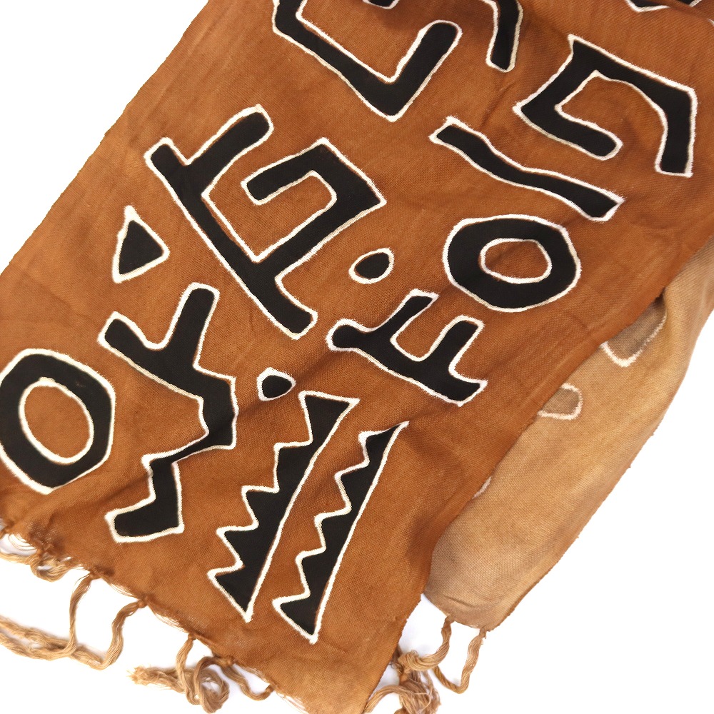 風合いの良い手織りの薄い綿布に泥染め、草木染めで模様を染めました。伝統的な行程で染められたマリの薄布ショールです。ベースカラーは、黒系は泥、茶系は草木、カーキベージュは草木+藍など、様々な天然染料を混ぜ合わせ、繊細な色を出しています。染め上がった布に、伝統柄や独創的なデザインを、ひとつひとつ手描きした、世界にひとつのショールです。ショールやスカーフ以外にも、テーブルランナーやタペストリー等お部屋のインテリアとしてお使いいただけます。天然染料のため色落ちがあり。