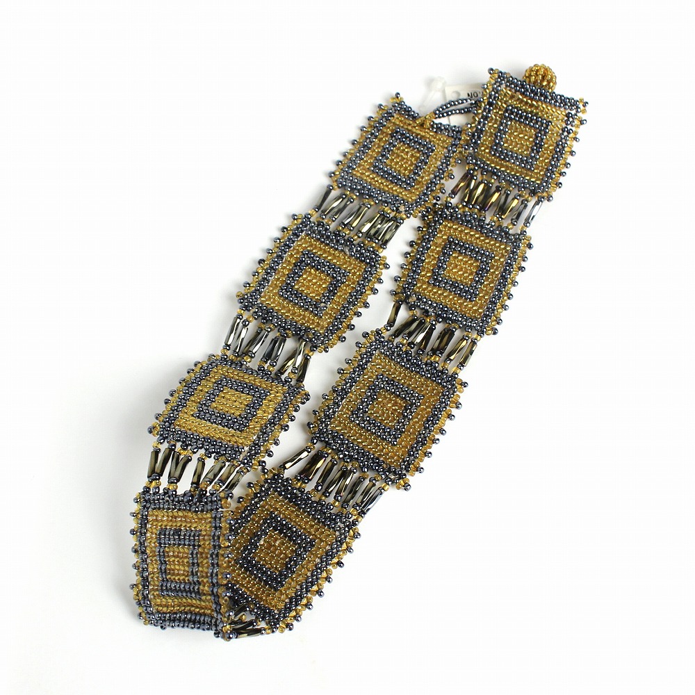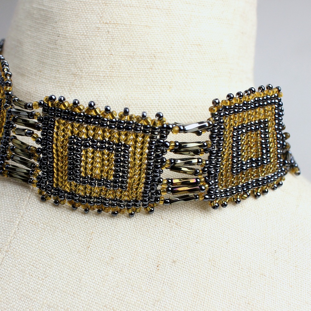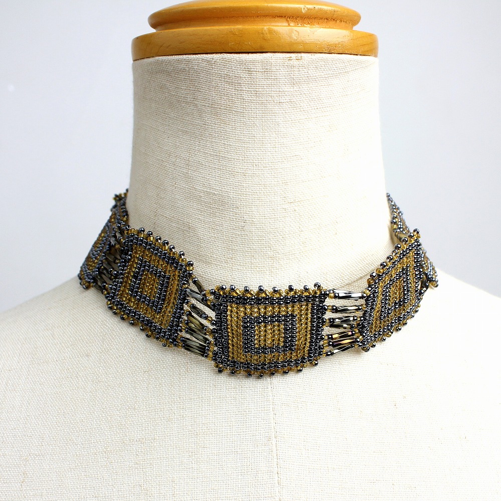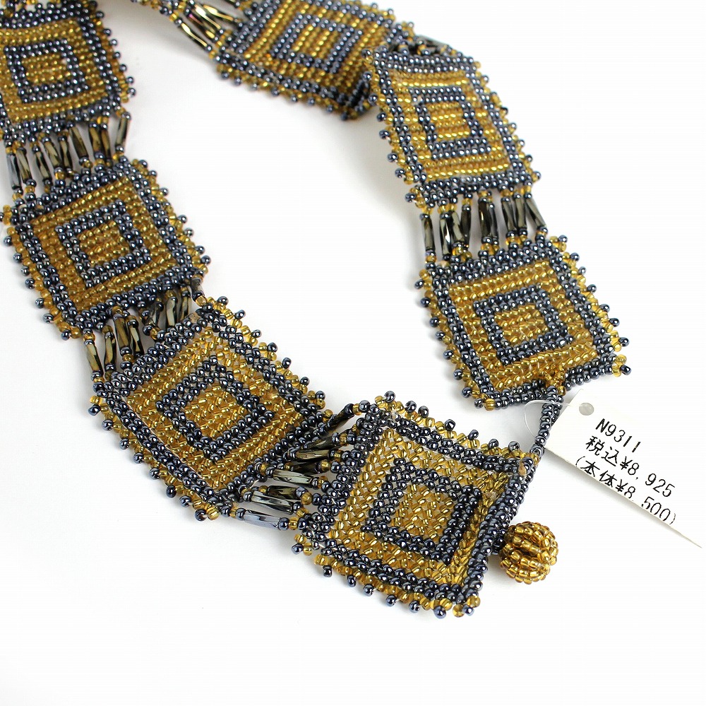 南アフリカのビーズを贅沢に使用した個性的なネックレスです。モダンな柄がその美しさをより際だたせています。